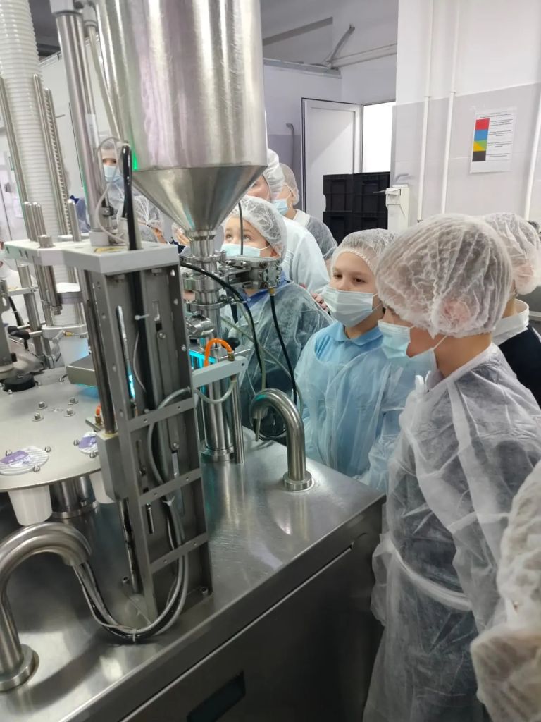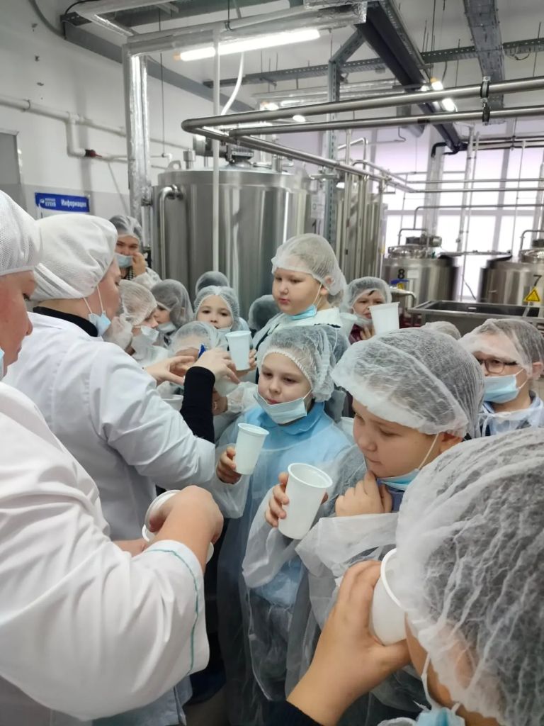 Маленькие посетители смогли своими глазами увидеть, как готовят и разливают их любимые молоко, йогурт и творог, увидели работу сложного оборудования, послушали о том, люди каких профессий работают на молочном производстве и узнали о правилах соблюдения чистоты в цехе.